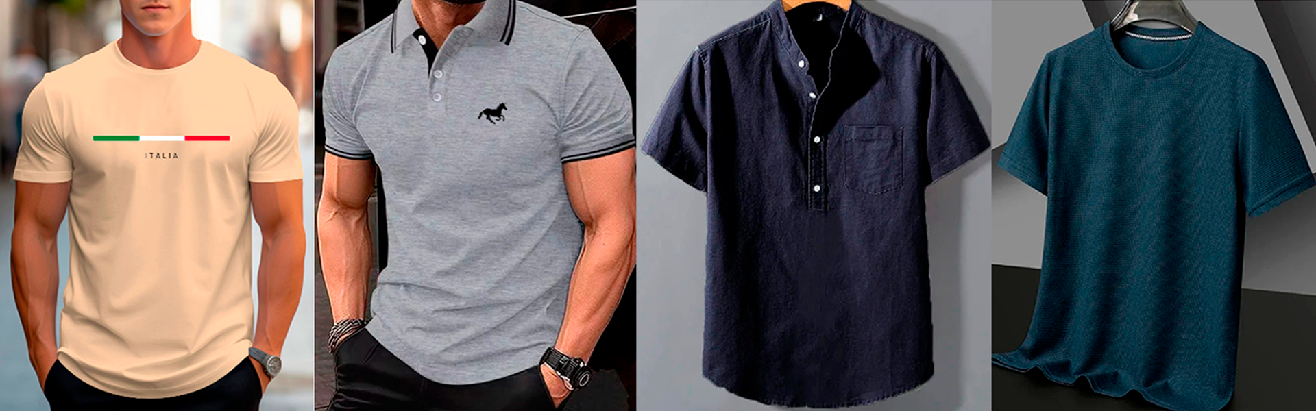 Camisetas Masculinas Gola Alta Básica De Algodão